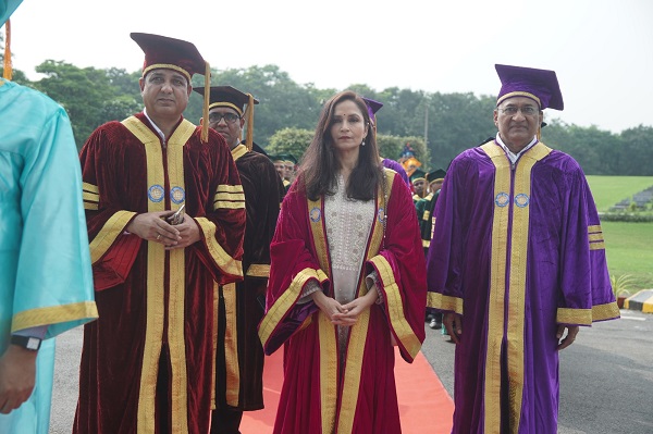 ओ.पी. जिंदल विश्वविद्यालय की चांसलर, श्रीमती शालू जिंदल ने दीक्षांत समारोह को संबोधित करते हुए डिग्री प्राप्त करने वाले सभी विद्यार्थियों और रैंक होल्डर्स को हार्दिक बधाई और उज्ज्वल भविष्य के लिए शुभकामनाएं दिया। छात्रों को सम्बोधित करते हुए उन्होंने कहा, “आज का दिन आपके जीवन की उस मेहनत, समर्पण और संकल्प का उत्सव है, जिसने आपको इस गौरवपूर्ण मुकाम तक पहुँचाया है। यह केवल एक समापन नहीं, बल्कि एक नई शुरुआत है – जहां आप अपने सपनों को हकीकत में बदलने के लिए निकल पड़ते हैं। आपमें वह सामर्थ्य है, वह दृष्टि है और वह संकल्प है, जो इस समाज, इस देश और इस विश्व को एक नई दिशा दे सकता है। आप जीवन की किसी भी राह में जाएं अपने भीतर की शक्ति पर विश्वास रखें। हर चुनौती को अवसर में बदलने की क्षमता आपके भीतर है। असफलताएं आएंगी, पर आत्मविश्वास ही वह शक्ति है जो आपको हर बार फिर खड़ा कर सकती है। आपका आत्मविश्वास, आपकी सोच, और आपकी मेहनत — यही भविष्य की नींव रखेगी। इस अवसर पर श्रीमती जिंदल ने उन सभी माता-पिता और परिवारजनों को भी विशेष रूप से धन्यवाद एवं शुभकामनाएँ दीं, जिनके समर्थन और विश्वास ने विद्यार्थियों को इस मुकाम तक पहुँचने में मदद की।