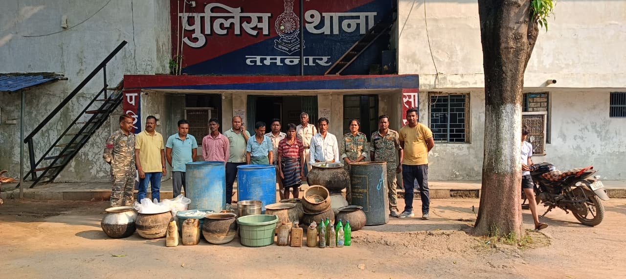 तमनार में अवैध शराब पर ताबड़तोड़ कार्रवाई : 6 आरोपियों से 399 लीटर अवैध महुआ शराब जप्त, तमनार पुलिस-साइबर सेल की संयुक्त टीम ने ध्वस्त की बड़ी शराब भट्टी