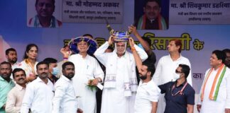 मुख्यमंत्री भूपेश बघेल ने गोल मारकर फुटबॉल ग्राउंड का किया उदघाटन